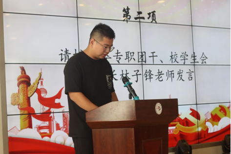 莅临本次大会的有公司党委委员黄凯老师,校团委专职团干兼校员工会秘书长林子锋老师,9728太阳集团行政副经理高伟老师,9728太阳集团分团委书记兼员工会秘书长项亭老师以及来自各二级学院分团委书记的杨帆老师、谢琦老师、王超老师、卢出农老师,9728太阳集团辅导员童冰老师,凃君老师,魏紫熙老师和吕渤老师。