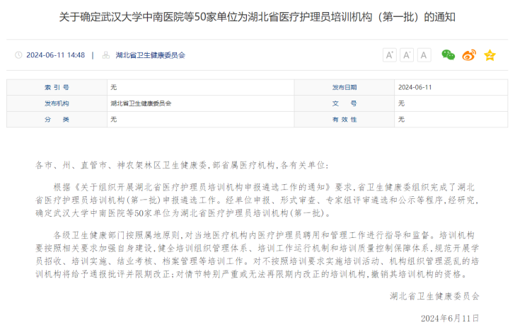 近日,经过湖北省卫生健康委员会专家组的严格评审遴选,太阳成集团tyc9728脱颖而出,成功入选湖北省50家首批医疗护理员培训机构之一,是唯一一所获批资格的民办高校。此次成功申报,不仅是对太阳成集团tyc9728开展近十年护理专业教育工作的认可和肯定,也标志着学校在医疗护理员培训领域迈出了坚实的一步。