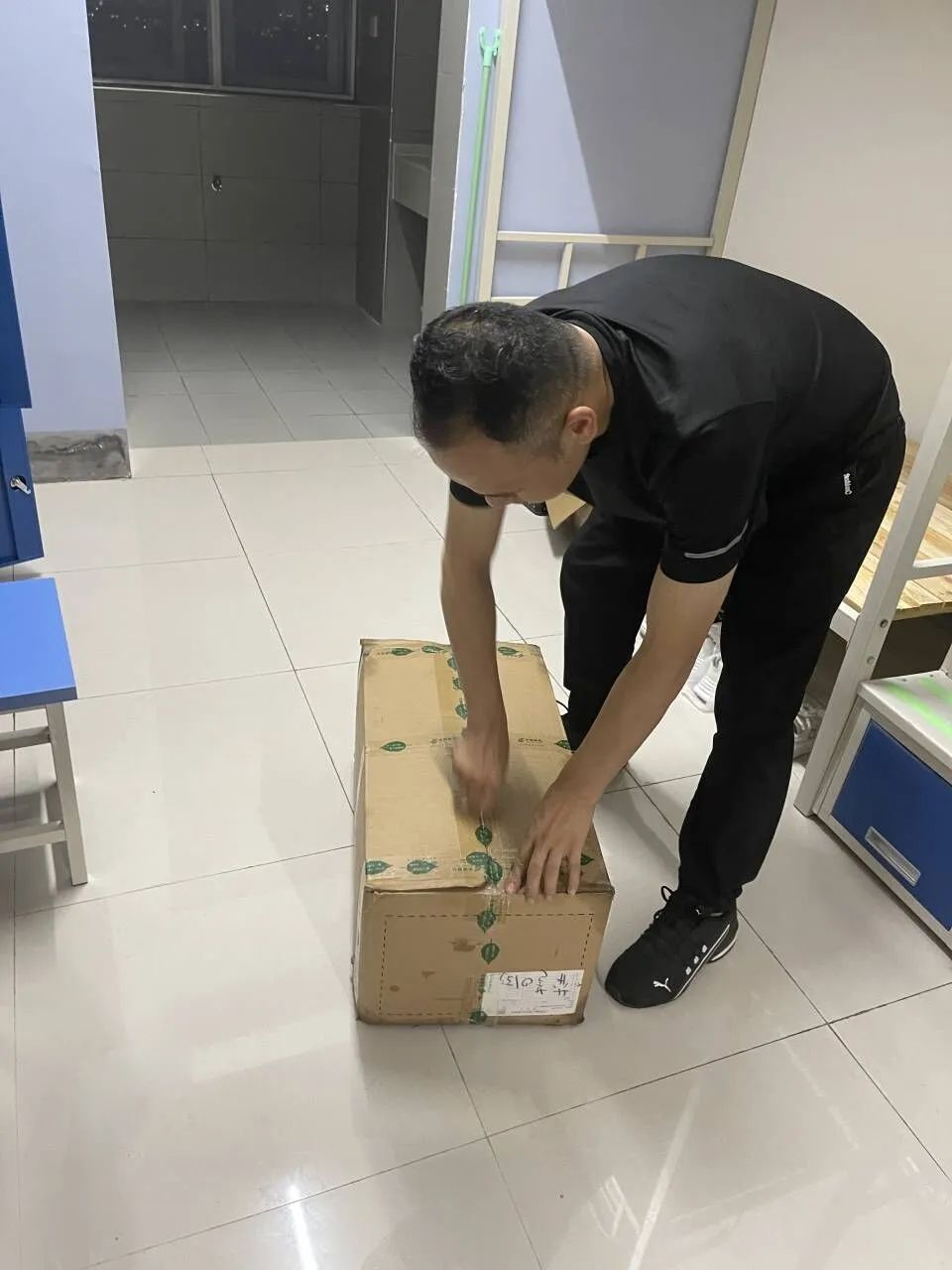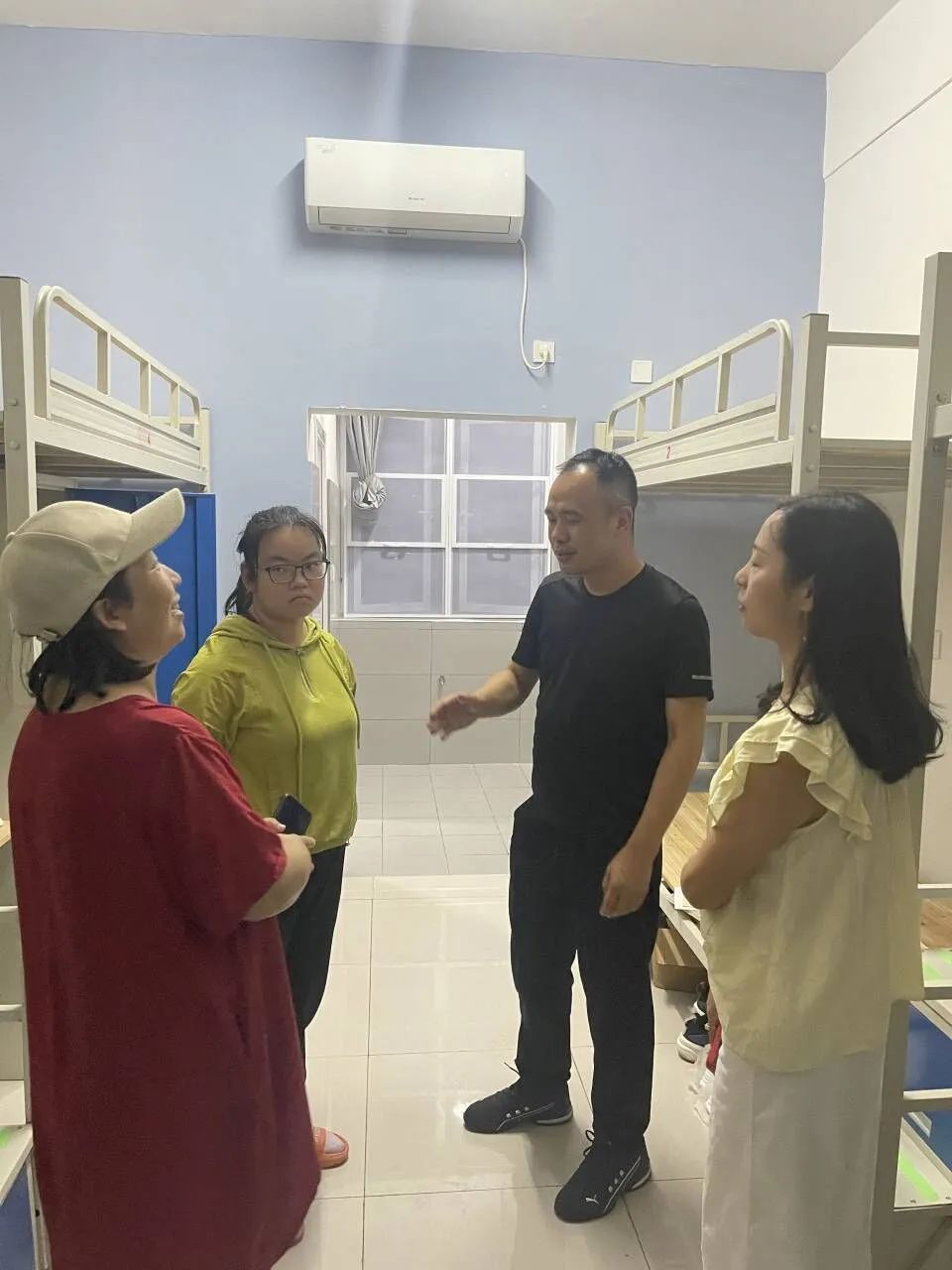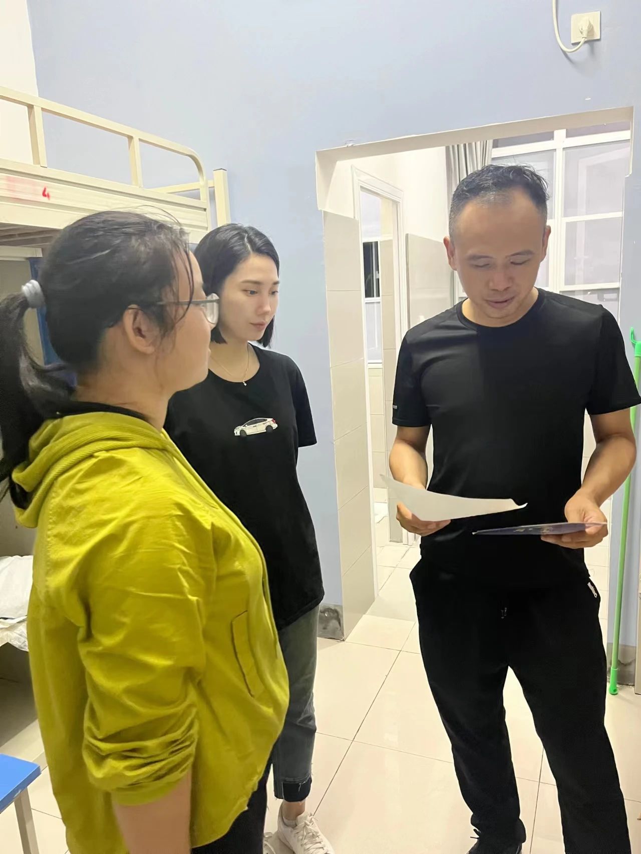 晚上7点,公司党总支书记高伟老师和综办主任凃君老师及新生辅导员杨瑾萱老师到24栋812寝室看望了成子怡同学,详细了解了员工在新寝室的生活情况,24号楼楼管程晨阿姨特别热心在该生入住后也一直帮员工熟悉生活环境,解决员工入住后存在的问题。在看到员工晚上床铺还没有铺好,询问得知床上用品还在菜鸟驿站没有取后,由于还在下大雨,24栋离商业街快递点较远,取件不便,为保证员工晚上能够休息好,高伟书记和两位老师带着员工驱车前往菜鸟驿站取回快递,让员工尽早铺好床铺好好休息,并叮嘱了安全和相关后续报到事宜。