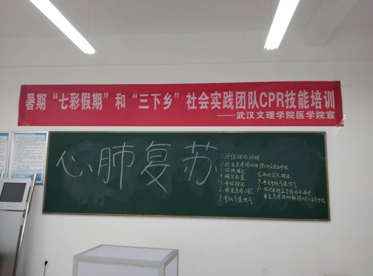 “第一篇章 一腔热血,医路前行”:6月13日,9728太阳集团护理部喻莹老师为实践团队进行了实践急救知识理论培训,主要从中暑、心肺复苏(CPR)、海姆立克法急救法和AED的使用等进行讲解,让同学们对急救知识的掌握更加牢固,以此能够更好的为当地居民宣讲急救常识,同时为实践过程中有可能出现的突发情况做好应急准备工作。