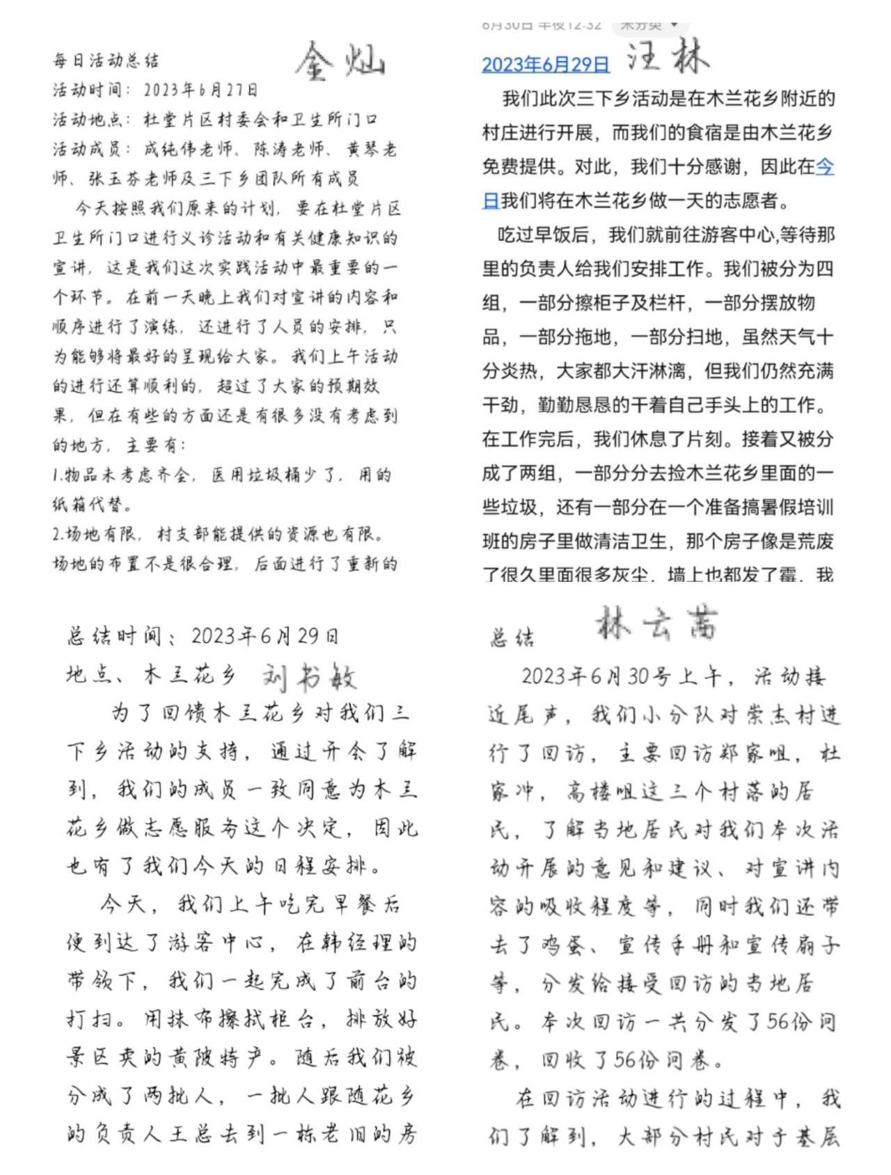 来自2021级护理学专业的三下乡团队负责人刘书敏同学这样说: