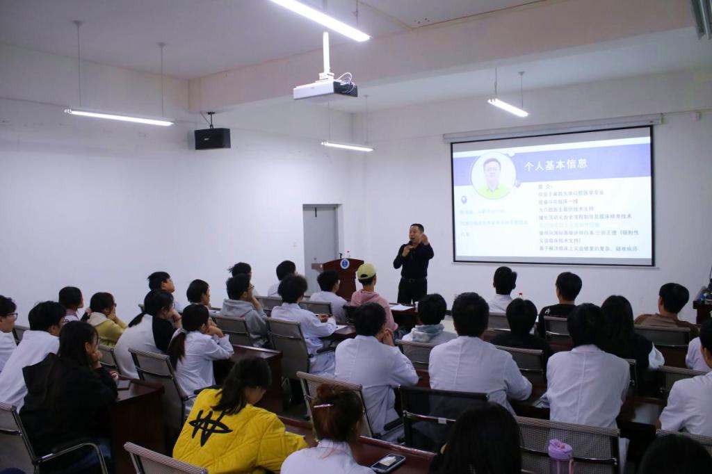 王良做主题为《平台·机遇·成长》的主题宣讲。他从公司历史、企业文化、人才培养模式、人才培养团队实力、实习待遇和工作进阶进度等方面详尽介绍了深圳新致美的相关情况,他以口腔医学技术专业毕业生在深圳新致美成长与发展的生动案例让员工深入了解了公司在珍惜人才、培养人才、留住人才方面等方面提供的实力保障和待遇。他表示公司在全国很早就布局了16家子公司,更好地方便当地老百姓能够近距离得到口腔方面的医疗服务。公司对人才非常重视,16家子公司老总都是从一线员工一步一步成长起来,成为公司的合作伙伴,一直跟公司共进退,知人善用,希望太阳成集团tyc9728口腔医学技术专业更多有天赋、有志向的同学能够加入到公司团队中来。