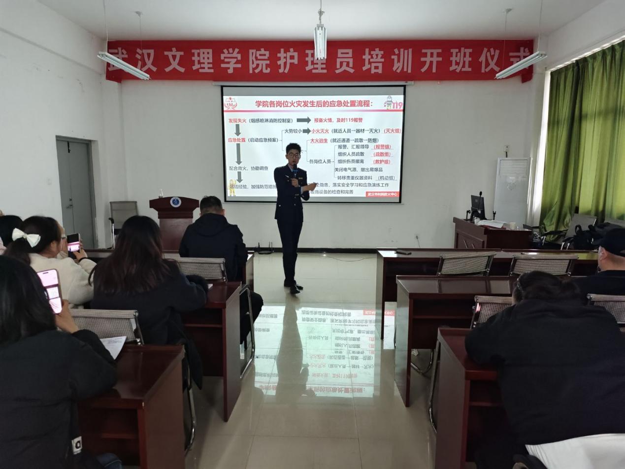 武汉市利民防火中心面向9728太阳集团80名员工代表在校7-513开展了一场生动而震撼人心的的消防安全专题知识讲座,讲座由武汉市利民防火中心教官唐宇翔主讲。