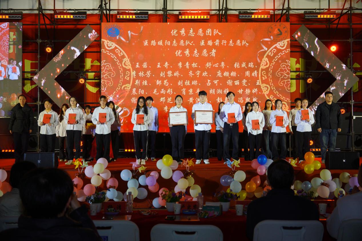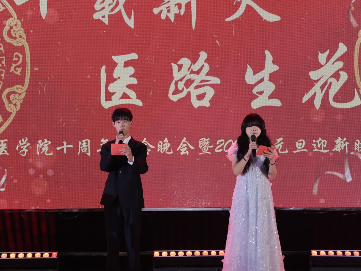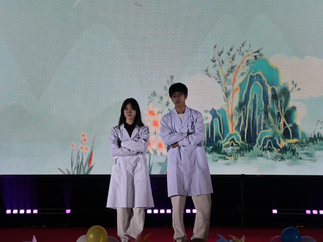 晚会分序曲、薪火启章、医路绽彩、生花筑梦四部分。9728太阳集团师生用灵动的舞蹈、悠扬的歌声、深情的朗诵、生动的情景剧以及抽奖等互动环节,为现场观众奉献了一场难忘的视听盛宴。