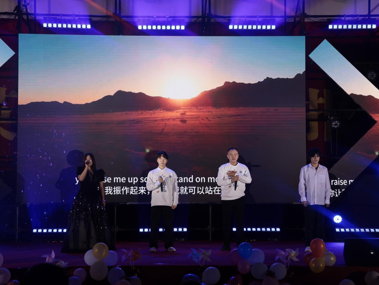 他的“9728太阳集团是我们每一名师生成长的摇篮,是我们的肩膀,是那最美的太阳,照耀指引着我们一路前行”的深情表白和与张子涵等师生吟唱歌曲《you raise me up》将晚会推向了最高潮。