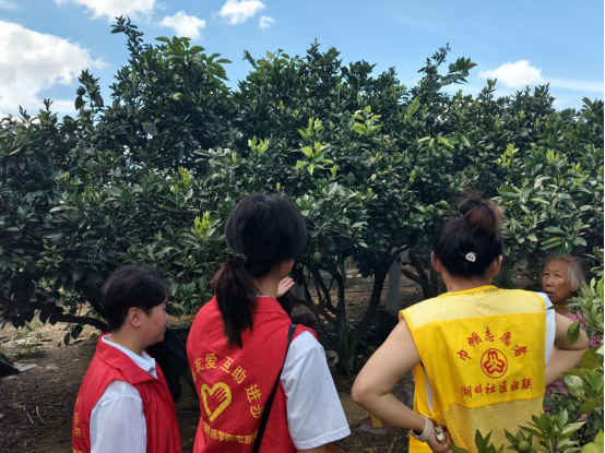 第二小分队在张萌老师带领下前往鄂州葛店经济开发区湖畔社区,协助湖畔社区居委会、妇联摘收猕猴桃,携带水果、蔬菜慰问脱贫户与社区老人并科普医学健康知识。