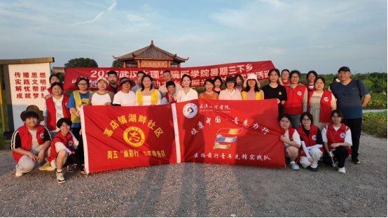 医路前行”青年先锋社会实践队与鄂州市葛店经济开发区湖畔社区工作人员合影
