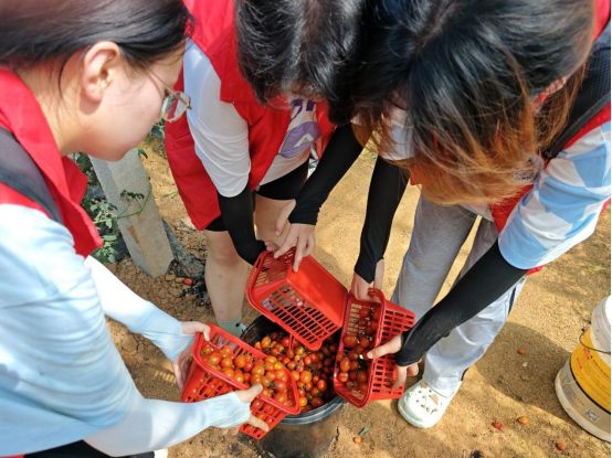 上午,实践团队被分为两小分队,在朱雪老师和黄园老师的带领下,前往葛店镇长咀果蔬大棚生态采摘园采摘水果和蔬菜和开展“焕彩行”、清洁家园等志愿服务。
