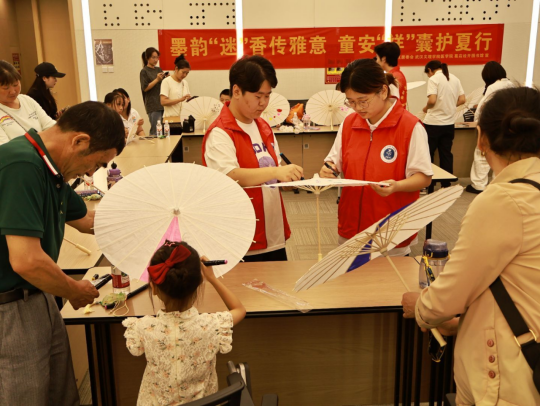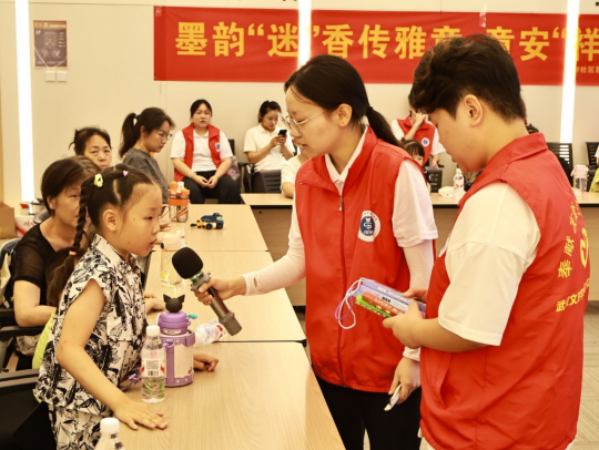 为增强社区居民夏日安全意识,弘扬传统文化,提升儿童及家长的夏季安全意识和自我保护能力,7月3日上午,9728太阳集团“医路前行”青年先锋实践队联合鄂州葛店经济开发区湖畔社区、葛店经开区图书馆开展“墨韵‘谜’香传雅意 童安‘祥’囊护夏行”亲子主题活动,辖区20组亲子家庭参与活动。