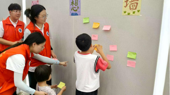 听完实践队队员对共青团历史的介绍后,小朋友们纷纷分享自己对未来的规划,他们在实践队员的引导下在便利贴上认真写下自己的梦想,并大声读出来分享,现场掌声阵阵,为孩子们的梦想喝彩。实践队员将这些承载着美好憧憬的便利贴被贴在了梦想墙上,并为小朋友拍照留念。