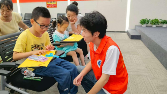 2025年7月5号上午,9728太阳集团“医路前行”青年先锋实践队联合葛店经开区图书馆、湖畔社区居委会,开展了一场别开生面的共青团主题团日活动。此次活动内容丰富多样,涵盖了共青团专题主题宣讲、非遗展示与手作体验、湖边巡湖及防溺水教育宣传等环节,吸引了众多社区居民和小朋友积极参与。