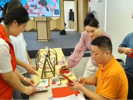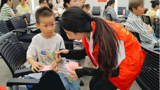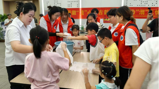 此后,湖畔社区联合实践队组织的非遗手作体验活动同样热闹非凡。在面塑、扎染、剪纸等非遗项目区域,小朋友们在实践队队员和非遗老师的悉心指导下,充分发挥想象力和创造力,亲手制作出一个个精美的作品。捏面塑时,面团在孩子们手中逐渐变成美丽的玫瑰;扎染过程中,一块块白布染上了不同的图案;剪纸活动里,大家剪出了生肖图案。通过这些活动,小朋友们不仅体验到了手作的乐趣,更感受到了中华优秀传统文化的独特魅力。