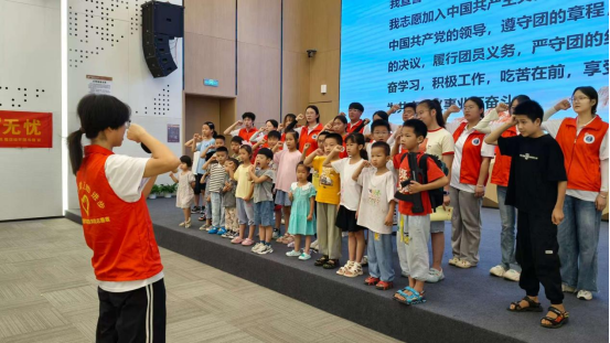 最后,实践队员带领小朋友们宣读入团誓词,鼓励他们好好学习,为成为合格的共产主义接班人而努力。