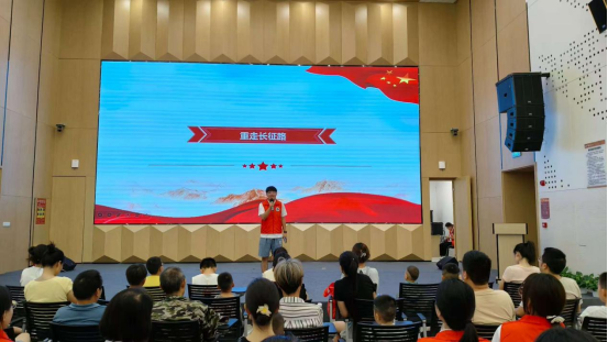 活动伊始,实践队宣讲员张成瑞、荆炫以展示长征路线图并以长征路线图上重要地点和历史事件为题与现场居民和小朋友互动提问方式开场,瞬间点燃了现场氛围,激发了大家对红色历史的兴趣。随后,一段精心准备的小视频,让在场的小朋友们直观地认识了中国共青团发展的历史,了解了共青团的使命与担当。