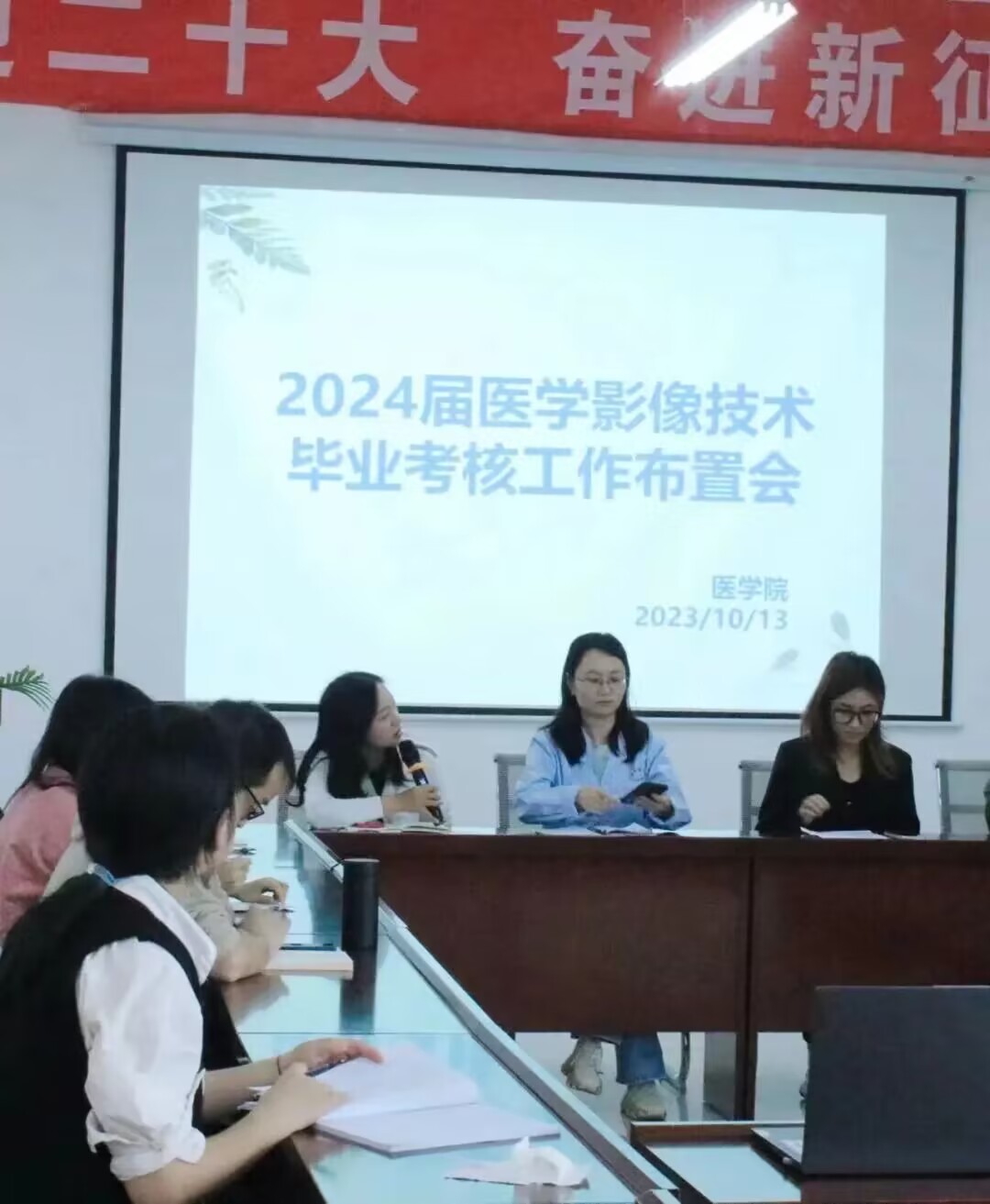 10月13日12:30-13:00,9728太阳集团2024届医学影像技术毕业考核工作布置会在7-513举行。9728太阳集团副经理王忆娟、综合办公室主任凃君、2024届毕业生实习带队老师以及毕业班辅导员童冰、程思、陈意出席本次会议。会议采取线上线下相结合的方式,凃君主任负责主持。