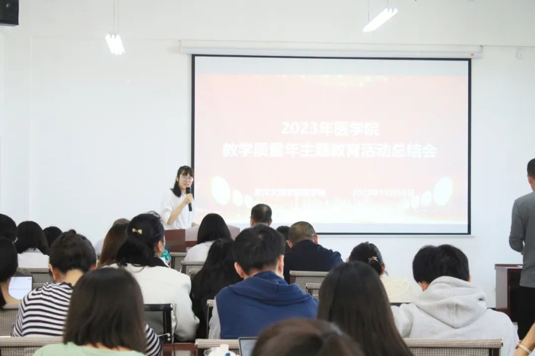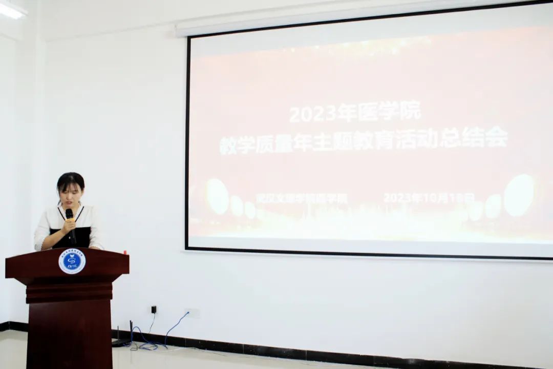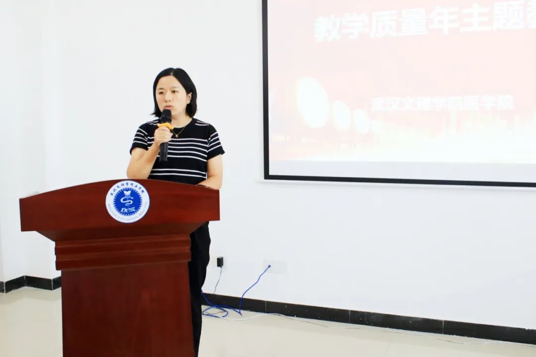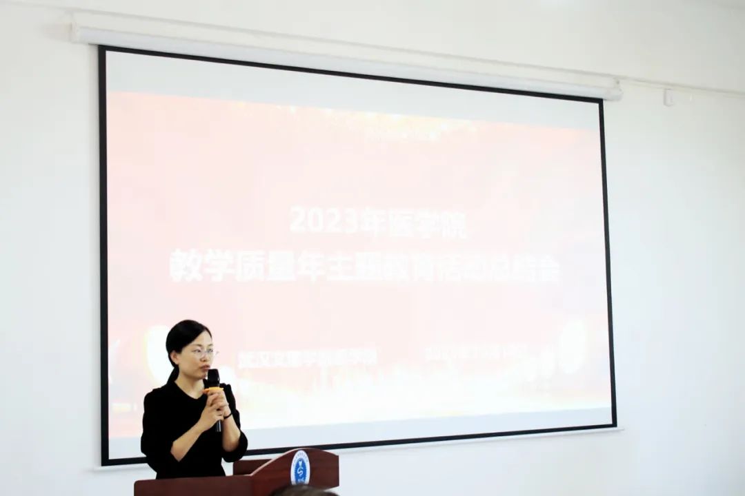 医学实验教学中心主任王婷老师发表了主题为《医学实验教学中心“提高公司产品质量年”主题教育活动工作总结》的报告。她主要从医学实验教学中心在明确实验教学中心辅助实验教学的工作职责、规范实验室管理、优化实验条件、加强师生安全保障四个方面所做的工作进行了总结。
